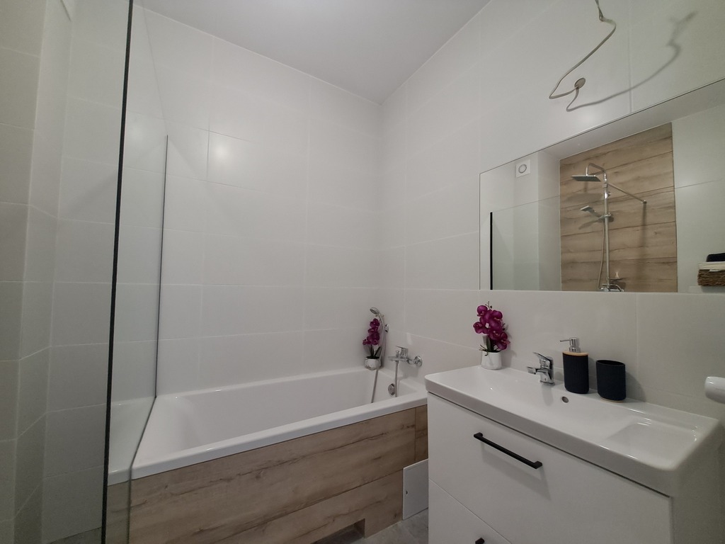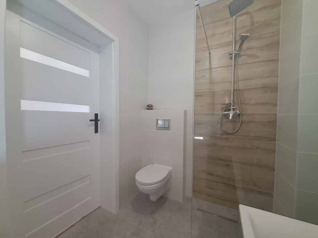 Kompletnie wykończona łazienka, stolarka drzwiowa w całym mieszkaniu.