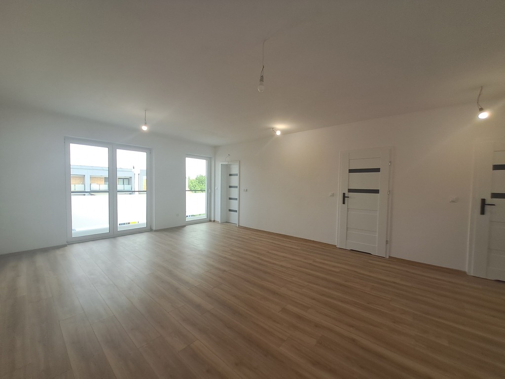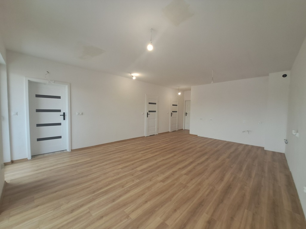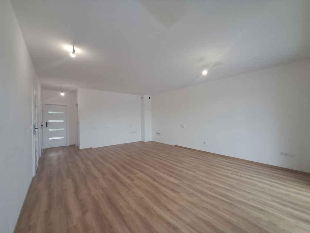 - przestronnego salonu z otwartą kuchnią i wyjściem na balkon