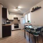W kuchni pełne wyposażenie, lodówka, kuchenka gazowa, mikrofalówka, piekarnik elektryczny, meble w zabudowie, zmywarka.