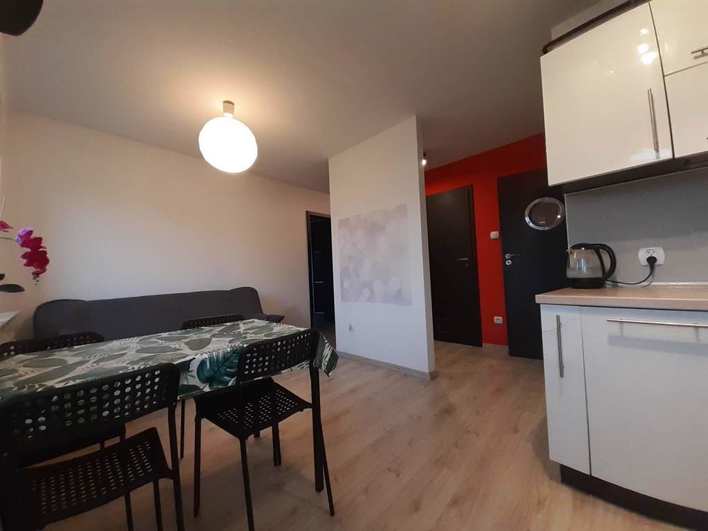Mieszkanie składa się widnej kuchni połączonej z salonem, oddzielnego dużego pokoju, łazienki oraz przedpokoju.