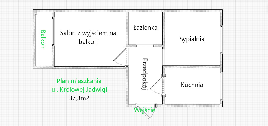 Mieszkanie o powierzchni 37,30m2 zlokalizowane na 4 piętrze w bloku przy ul. Królowej Jadwigi.