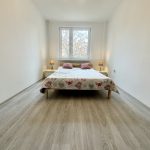 - Dwóch ustawnych pokoi z podłogami wykończonymi panelami i terakotą.