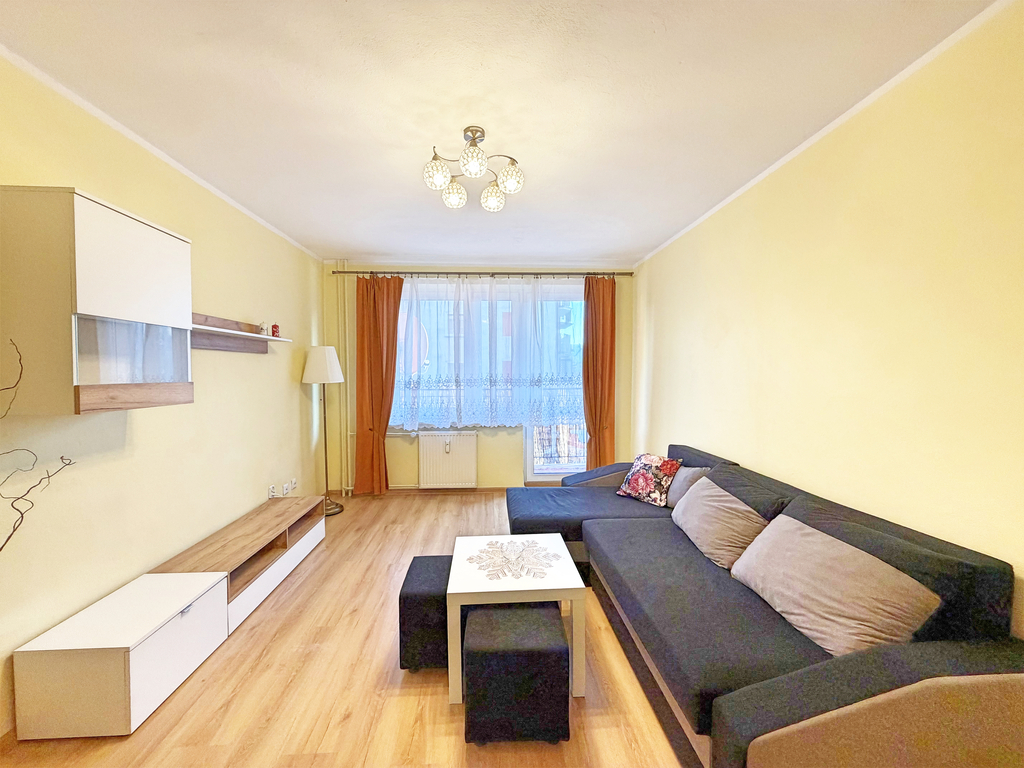 Mieszkanie jest w pełni umeblowane i wyposażone – w kuchni znajdziesz niezbędne sprzęty, w pokojach meble umożliwiające komfortowe funkcjonowanie od pierwszego dnia najmu.