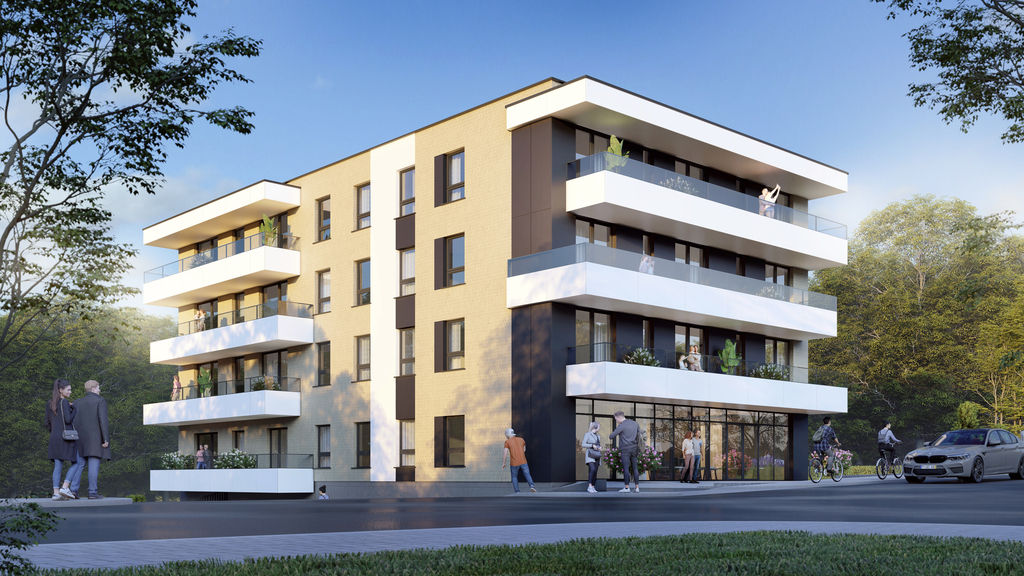 Budynek wyróżnia się współczesnym stylem architektonicznym – minimalistyczna forma i eleganckie wykończenia doskonale wkomponowują się w okolicę, a starannie dobrane materiały zapewniają trwałość i estetykę. Wszystkie mieszkania o powierzchniach od 28,21m2 do 65,91m2 zostały zaprojektowane z dbałością o optymalne wykorzystanie przestrzeni, aby zapewnić maksymalny komfort użytkowania.