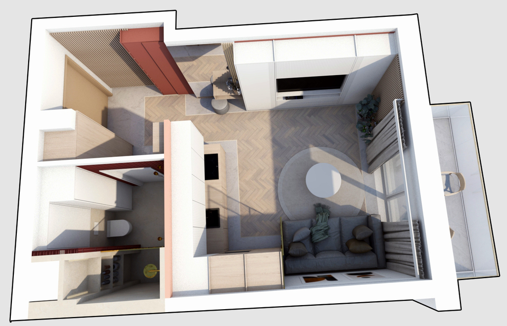 Przedstawione wizualizacje i grafiki mają charakter wyłącznie poglądowy i stanowią wyłącznie materiał pomocniczy, ułatwiający zorientowanie się w ogólnym wyglądzie oferowanej nieruchomości.