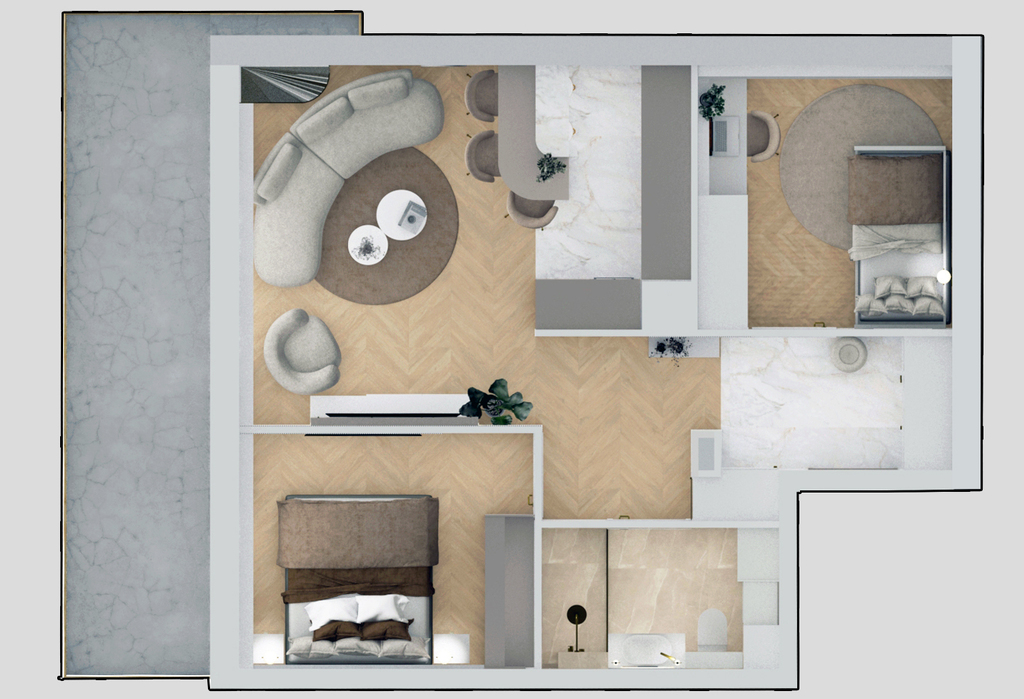 65,91m2 zostały zaprojektowane z dbałością o optymalne wykorzystanie przestrzeni, aby zapewnić maksymalny komfort użytkowania.
