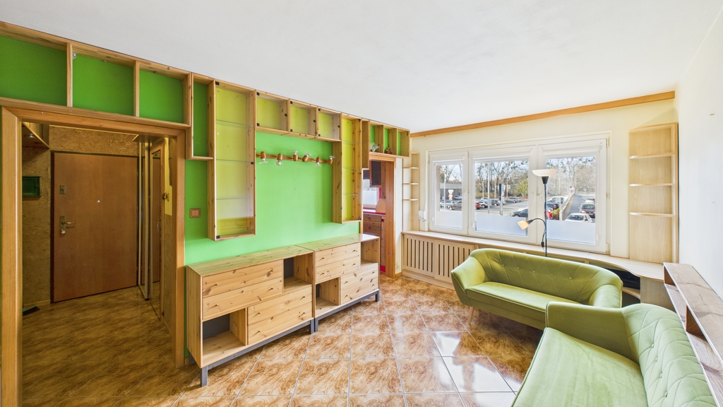Mieszkanie wymaga odświeżenia, co pozwoli nowym właścicielom na aranżację wnętrz według własnych upodobań.