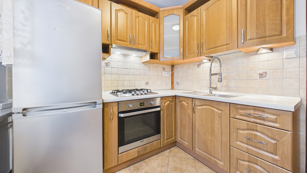 * kuchnia (zabudowa mebli kuchennych, lodówka,  płyta gazowa, piekarnik elektryczny)
