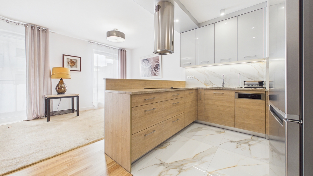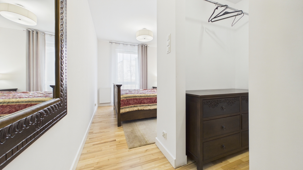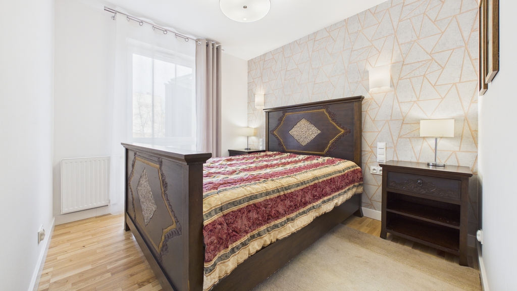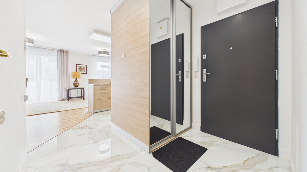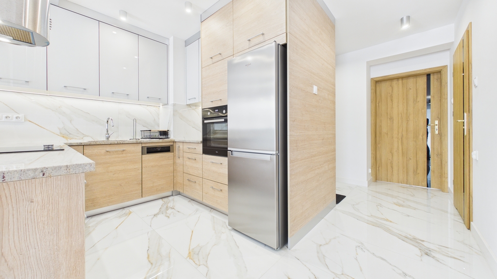 To mieszkanie łączy świeżość nowego budownictwa z dopracowanym, gotowym do życia wnętrzem. Jasna kolorystyka, naturalne światło i harmonijne połączenie drewna z nowoczesnymi formami tworzą przestrzeń, w której łatwo odnaleźć rytm codzienności – niezależnie od tego, czy pracujesz zdalnie, studiujesz, czy po prostu cenisz komfort i porządek.