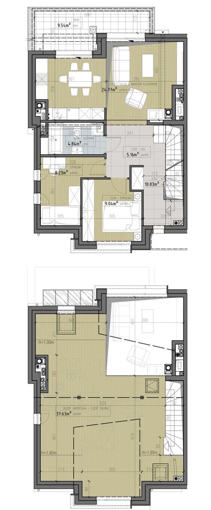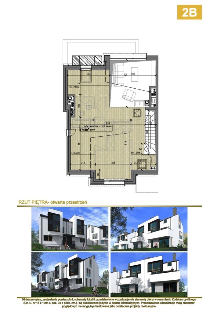Drugim poziomem jest przestrzeń o powierzchni 37.63m2, która pozostaje otwarta do własnej aranżacji, co stanowi niezwykłą zaletę tego rozwiązania, zwłaszcza z uwagi na obecność antresoli. To doskonała możliwość dostosowania układu pomieszczeń według osobistych preferencji i potrzeb.