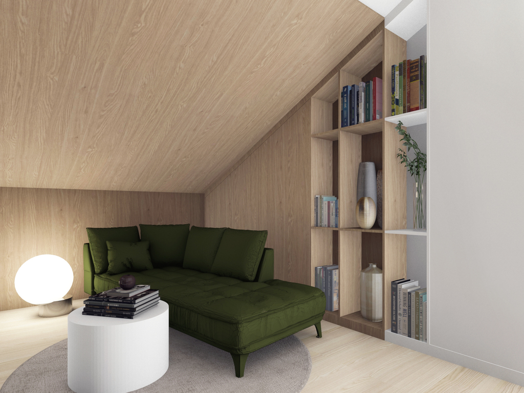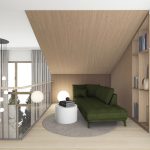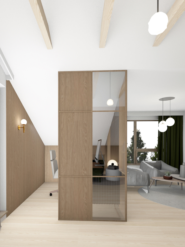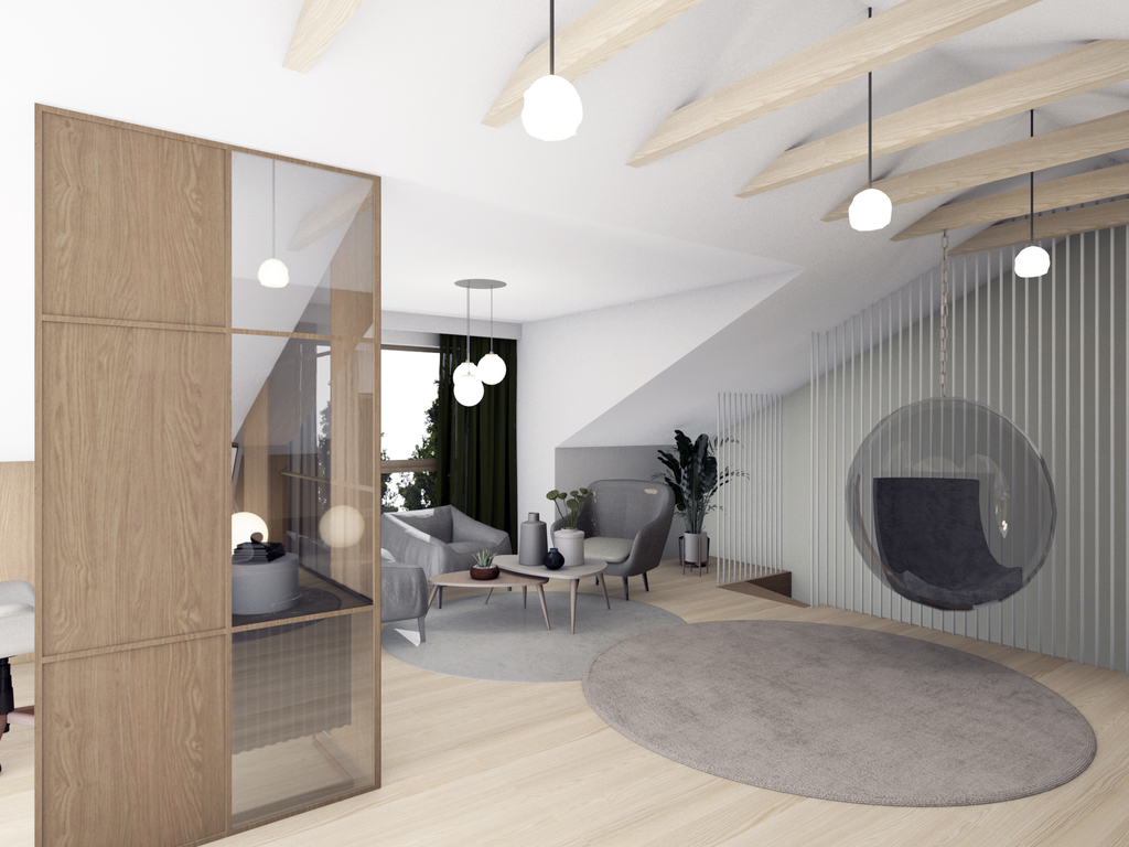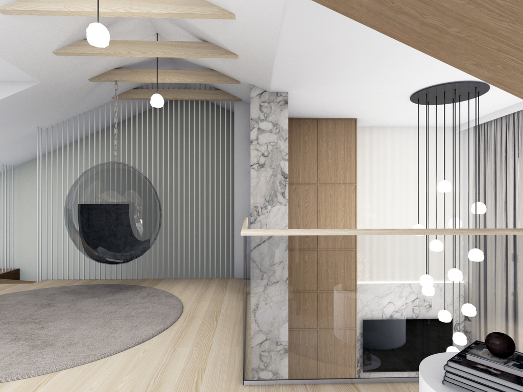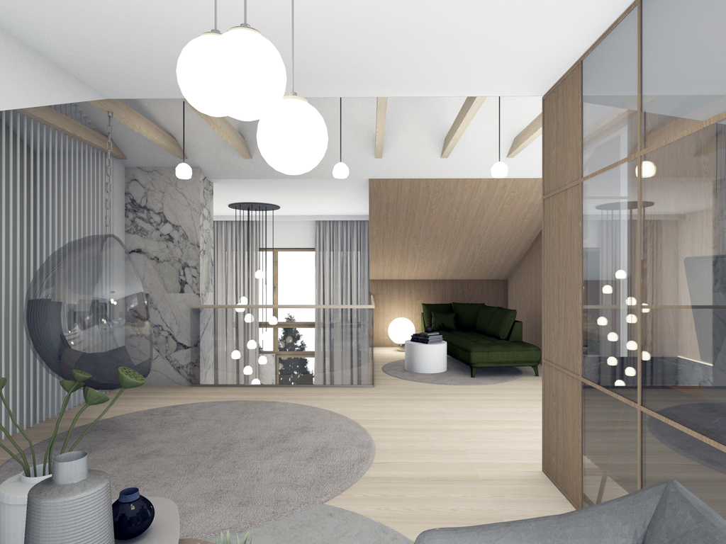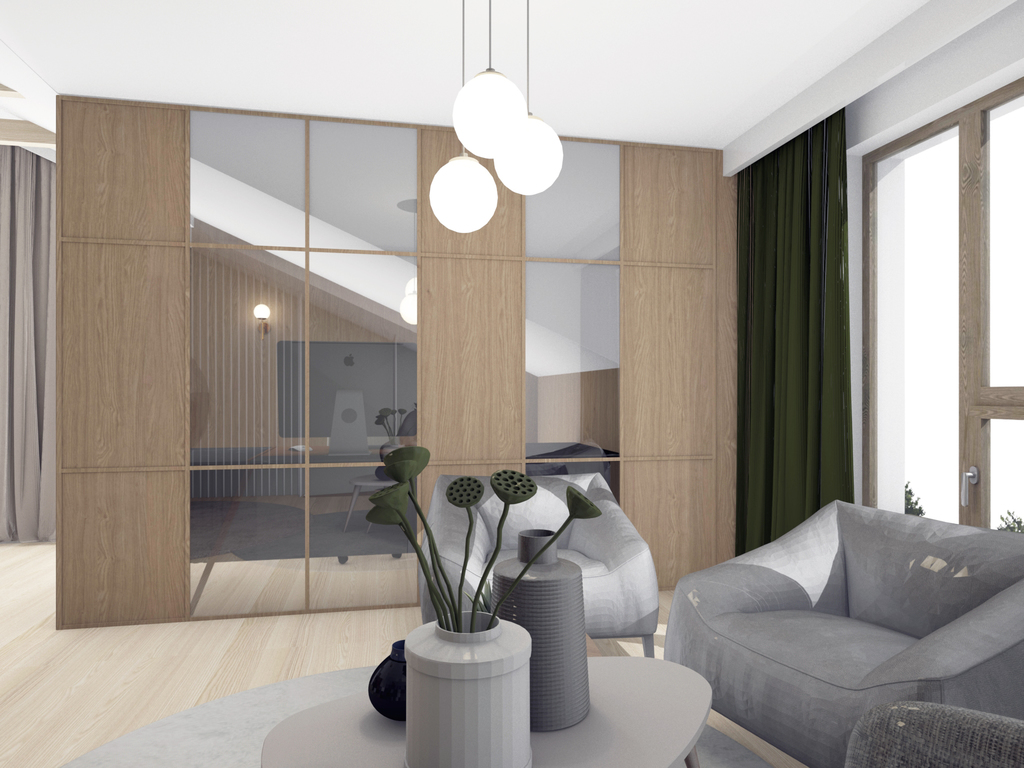 Apartament charakteryzuje się niezwykłym projektem mieszkania z antresolą.