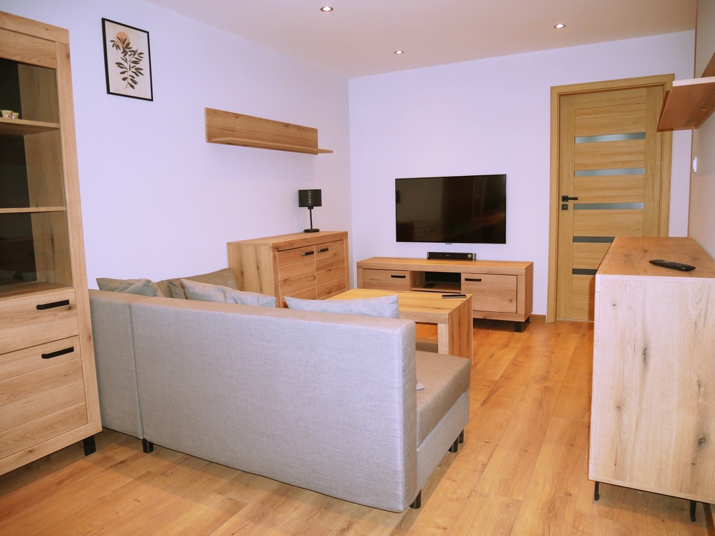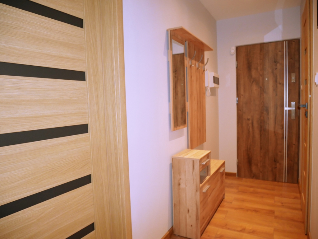 - Mieszkanie w pełni umeblowane i wyposażone w sprzęt AGD i TV (wszystkie meble i sprzęt są nowe).