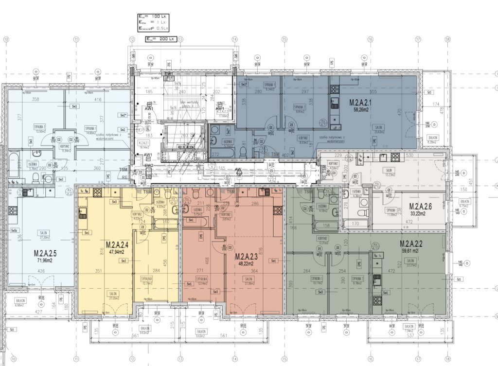 - W ofercie posiadamy w tej lokalizacji również mieszkania dwu i trzypokojowe o różnych powierzchniach na wszystkich pięciu kondygnacjach od parteru do czwartego piętra.