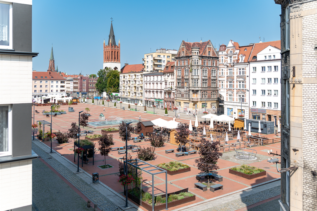 ul. Szymanowskiego 1 , w samym sercu Bytomia, co gwarantuje bliskość wszystkich najważniejszych punktów miejskich. W bezpośrednim sąsiedztwie znajdują się liczne restauracje, kawiarnie, sklepy,szkoły a także instytucje kulturalne, co pozwala mieszkańcom czerpać pełnię z życia w centrum miasta. Doskonała komunikacja miejska (autobus, tramwaj ,kolej miejska)oraz łatwy dostęp do głównych arterii drogowych umożliwiają wygodne poruszanie się zarówno po Bytomiu, jak i do sąsiednich miejscowości.