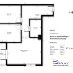 Oferowany apartament 3 pokojowy o powierzchni 57,32m2 składa się z następujących stref:-
