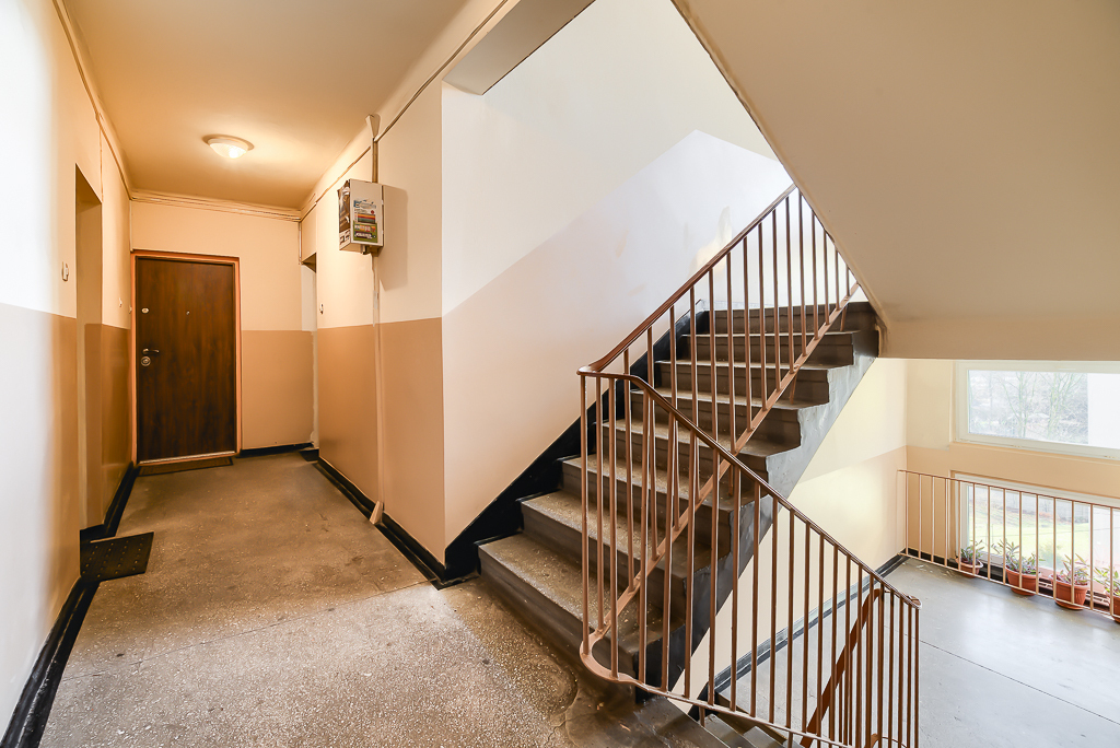 Budynek po termomodernizacji, klatka schodowa zadbana i czysta - zabezpieczona domofonem.