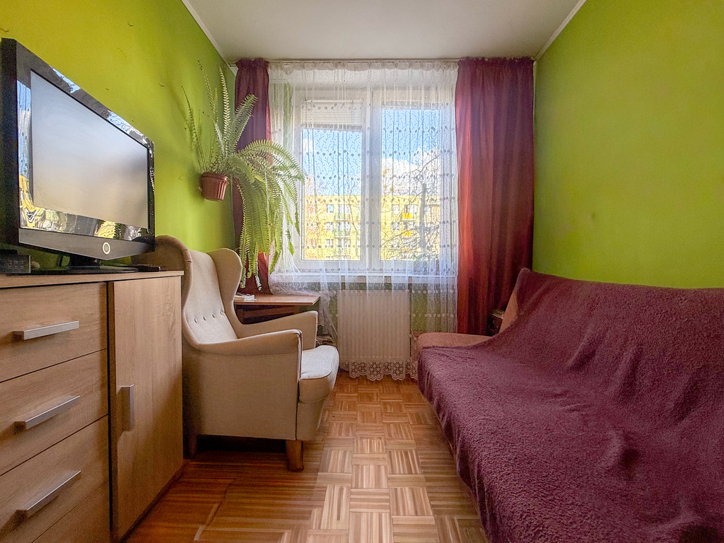 Mieszkanie składa się z przestronnego salonu z wyjściem na balkon, dwóch oddzielnych pokoi, kuchni z jadalnią, łazienki oraz osobnego WC.