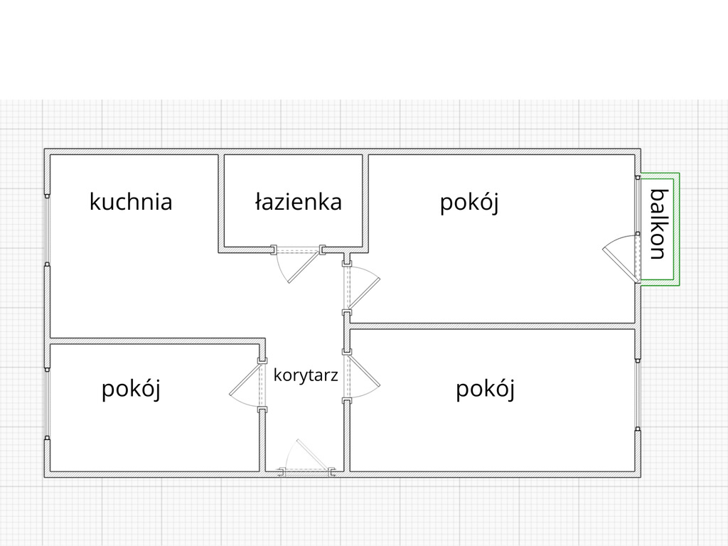 Układ pomieszczeń: - trzy oddzielne, ustawne pokoje – doskonałe jako sypialnia, pokój dziecięcy i salon,