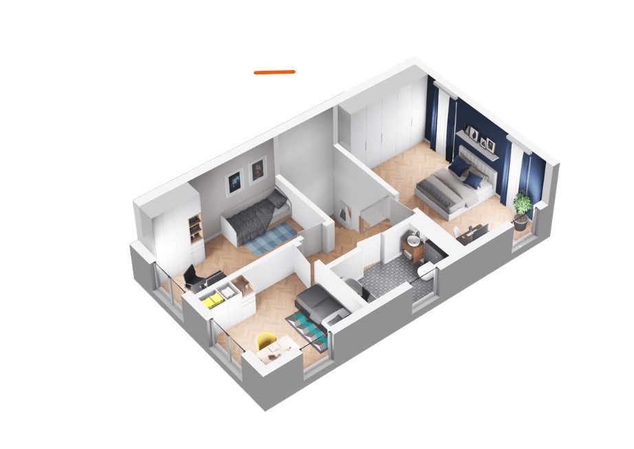 Przedstawione wizualizacje i grafiki mają charakter wyłącznie poglądowy i stanowią wyłącznie materiał pomocniczy, ułatwiający zorientowanie się w ogólnym wyglądzie oferowanej nieruchomości.
