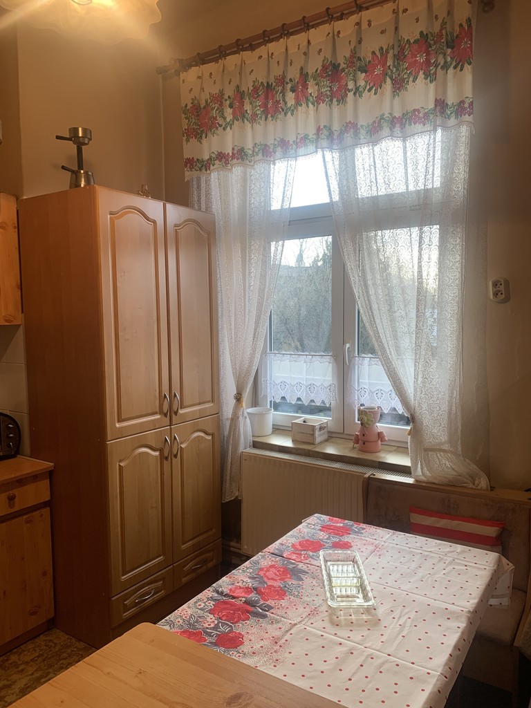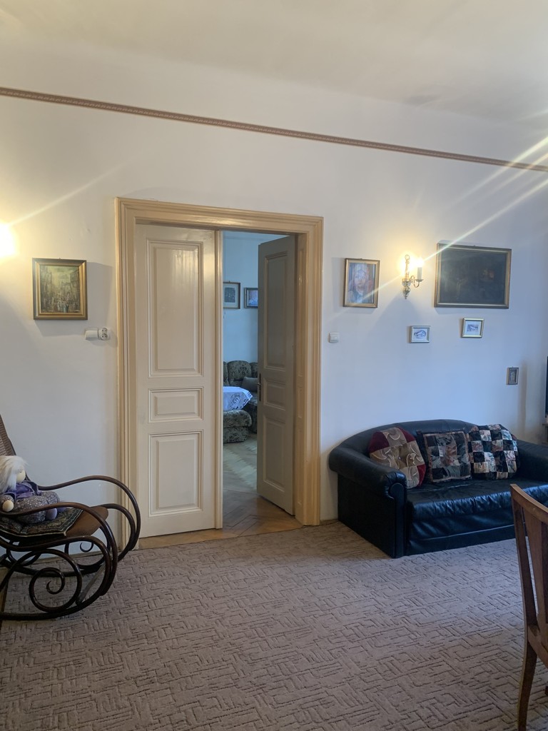 Standard mieszkania zapewnia komfort i wygodę. Piękne urokliwe piece kaflowe ze swoją historią. Mieszkanie wyposażone i umeblowane ( część mebli ruchomych za dodatkową dopłatą ) Kuchnia i łazienka zapewniają komfort użytkowania, pozostała część mieszkania to 4 duże przestronne pokoje, przedpokój, 2 spiżarki, możliwość korzystania ze strychu ( dostęp tylko dla 2-óch właścicieli ) oraz balkon, z widokiem na ogród ( 10 ar ) do dyspozycji właścicieli. Ogrzewanie gazowe, ciepła woda z piecyka gazowego. Okna PCV. Na podłogach parkiet, oraz płytki podłogowe, do mieszkania przynależy piwnica.