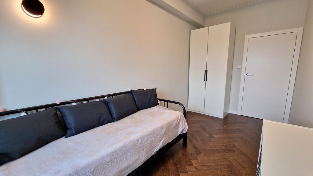- Sypialnia: szafa wolnostojąca, wygodne łóżko małżeńskie.
