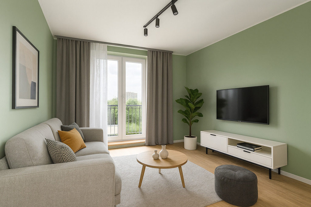 Mieszkanie sprzedawane jest bez mebli i zabudowy kuchennej – wizualizacje służą wyłącznie celom poglądowym.