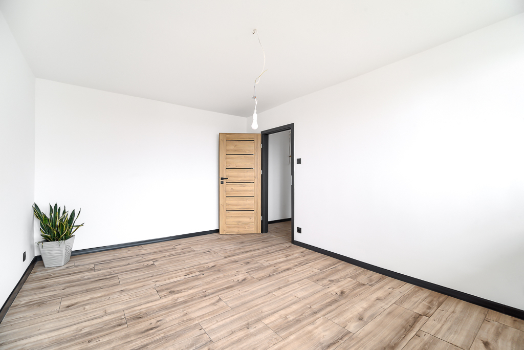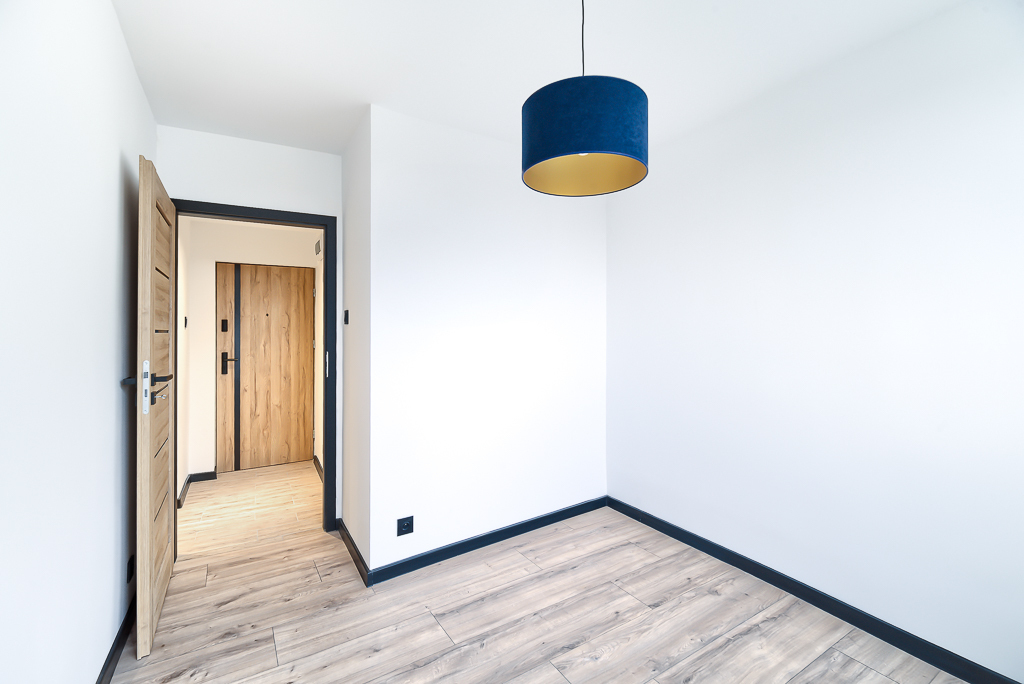 W przedpokoju oraz kuchni na podłodze położono płytki gresowe, w pokojach panele, oraz w całym mieszkaniu wymieniono wszystkie drzwi wraz z oscieżnicami.