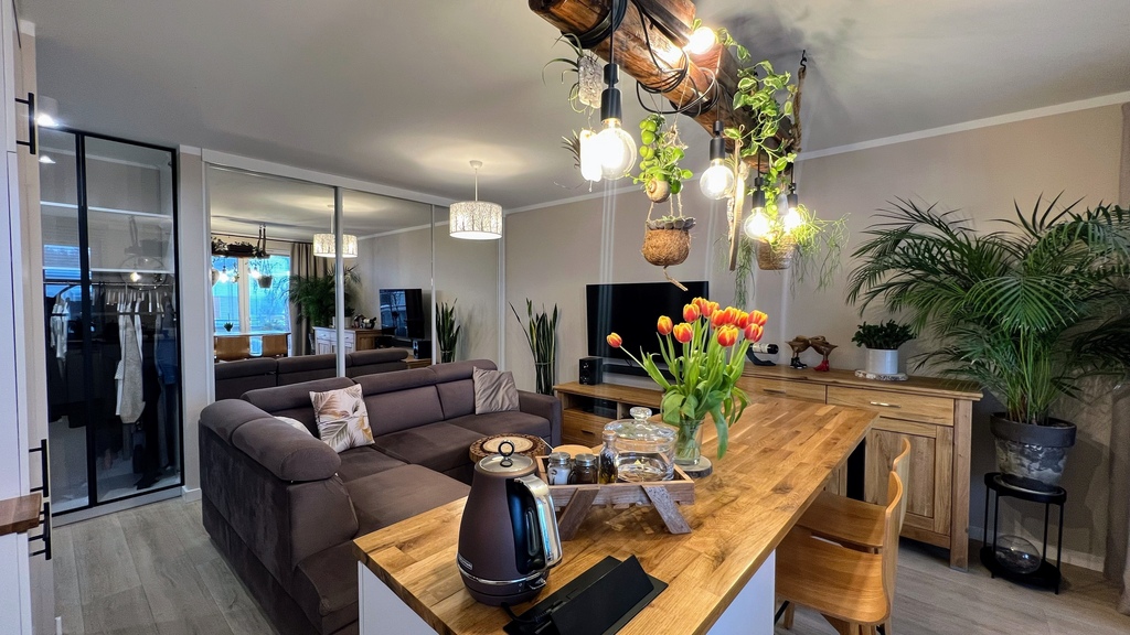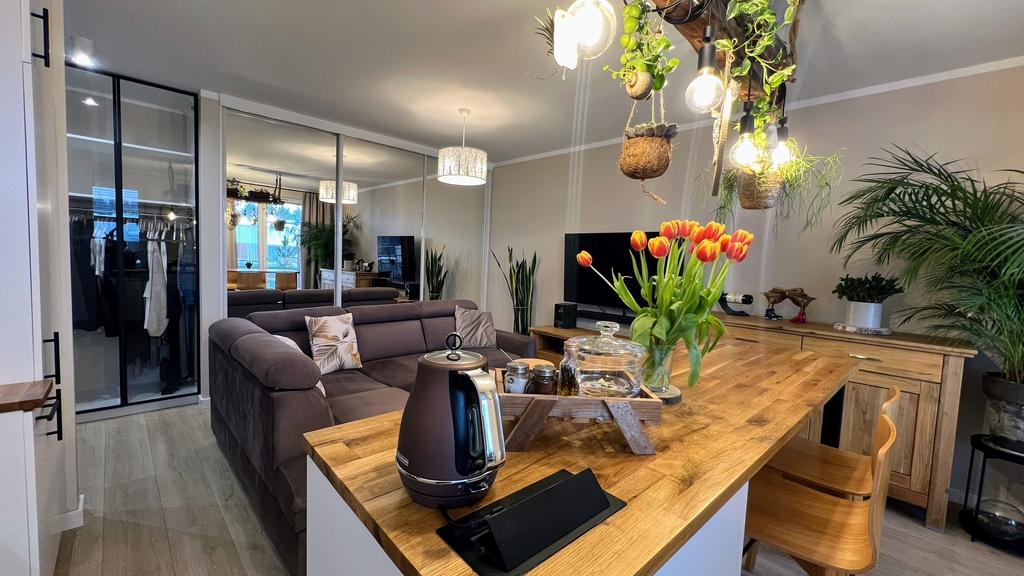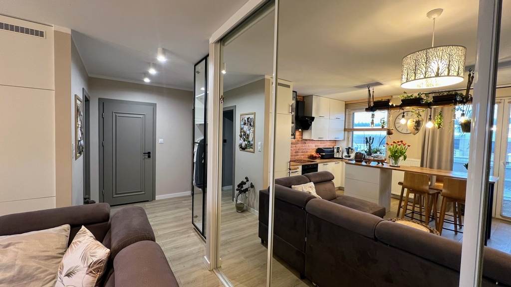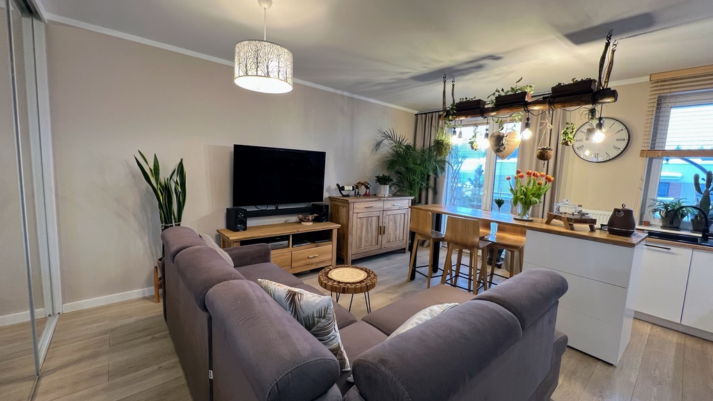 - 2 pokoje: przestronny salon z aneksem kuchennym + oddzielna sypialnia