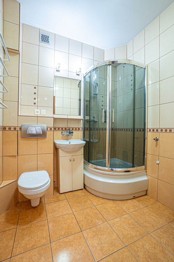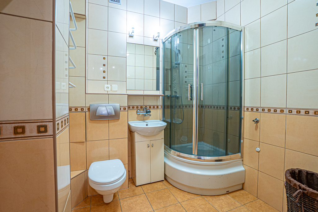 - łazienka z kabiną prysznicową,