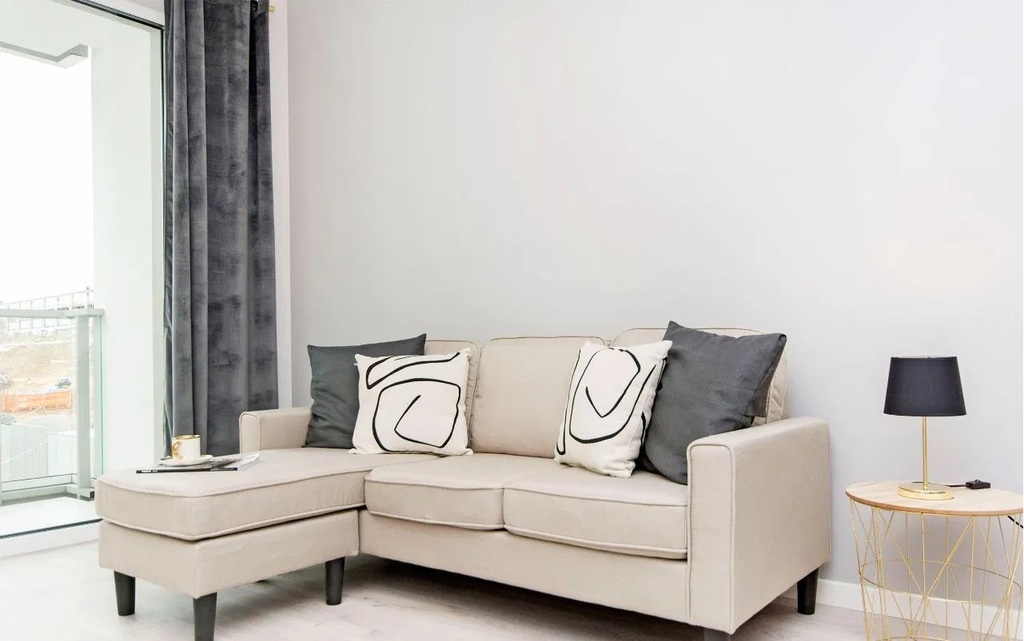 - Duży słoneczny salon z nowoczesnym aneksem kuchennym,