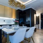 Aneks kuchenny zaopatrzony jest we wszelkie niezbędne sprzęty AGD takie jak: piekarnik, płyta indukcyjna, zmywarka, lodówka. Zamontowany został także granitowy zlew oraz złota bateria. Meble kuchenne zostały wykonane na wymiar z wysokiej jakości materiału.