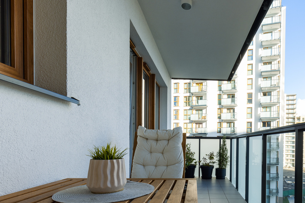 Przedmiotowy apartament znajduje się w inwestycji Nowa Letnica, będącej dziełem ogólnopolskiego dewelopera Robyg. Mieści się na szóstym piętrze w szesnastokondygnacyjnym budynku, wzniesionym w 2021 roku. Jest to budynek o najwyższym standardzie spośród tych oferowanych na terenie inwestycji. Odróżnia się między innymi: reprezentatywnych holem wejściowym, możliwością kontaktu z portierem bezpośrednio z mieszkania poprzez wideodomofon, oświetleniem (led) nad drzwiami wejściowymi do każdego z apartamentów, wózkarnią, specjalnym miejscem do przechowywania paczek dostarczonych przez kuriera, a także panoramicznymi oknami. Dodatkowo, na piętrze znajduje się tylko 5 mieszkań. Klatka schodowa jest czysta, zadbana, szeroka, monitorowana, a wejście do niej zabezpieczone wideofonem. Na poszczególne kondygnacje dostaniemy się także dzięki cichobieżnej windzie. Stan całej nieruchomości należy uznać za bardzo dobry. Na terenie inwestycji znajdują się liczne tereny zielone, oczka wodne, strumyki oraz place zabaw. Do dyspozycji mieszkańców przeznaczono: saunę, strefę fitness, strefa coworking z salą konferencyjną na wynajem oraz strefa KIDS-ZONE. W pobliżu nieruchomości znajdziemy ogólnodostępne miejsca postojowe.