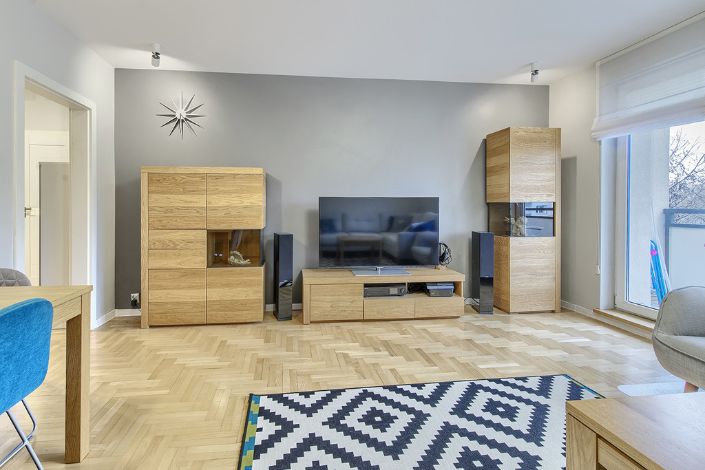- przestronnego salonu o powierzchni 22 m2 z wyjściem na balkon,