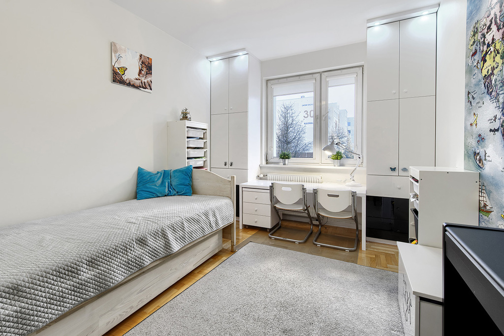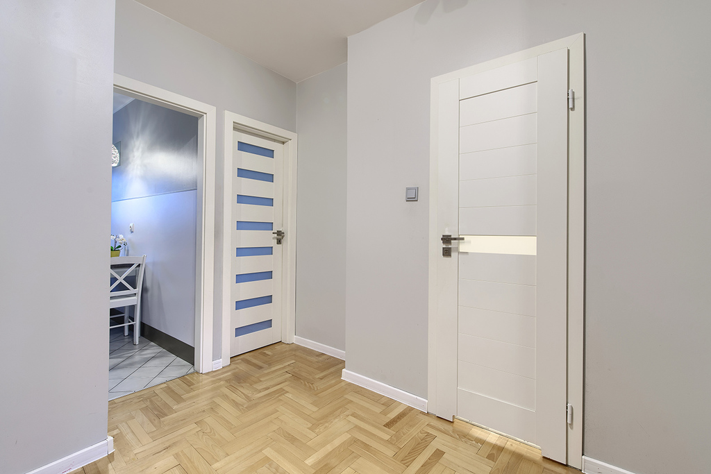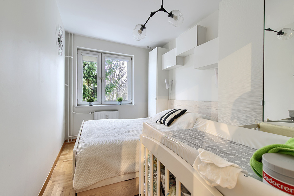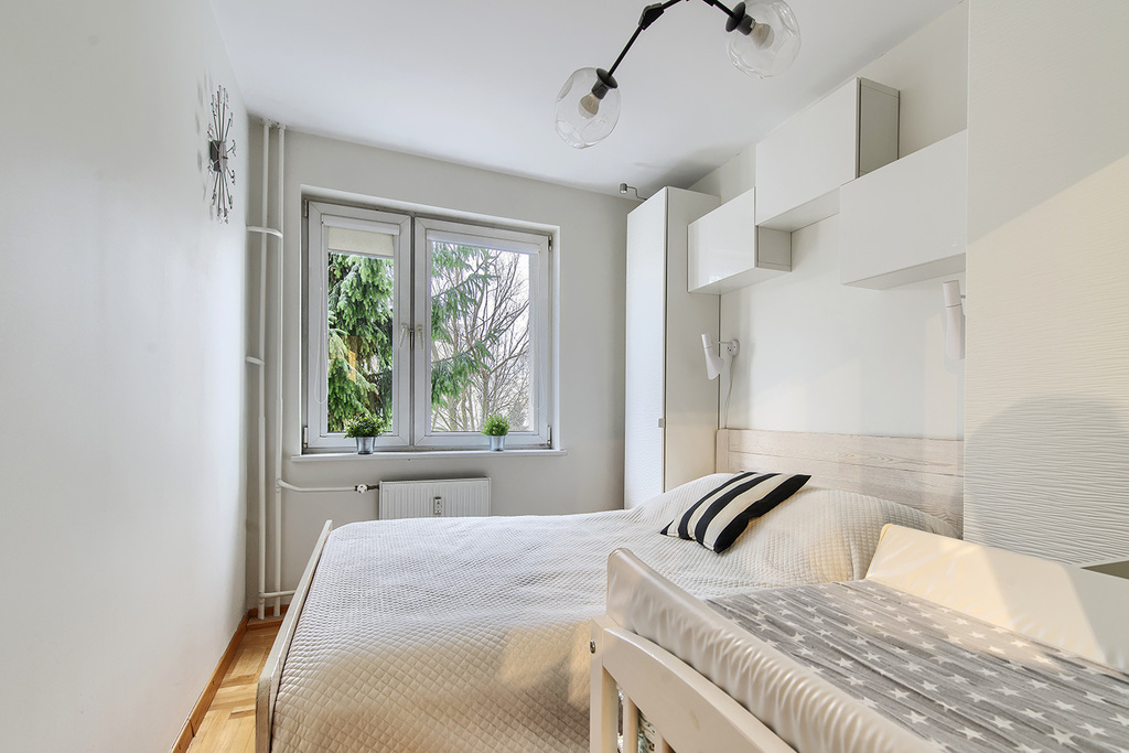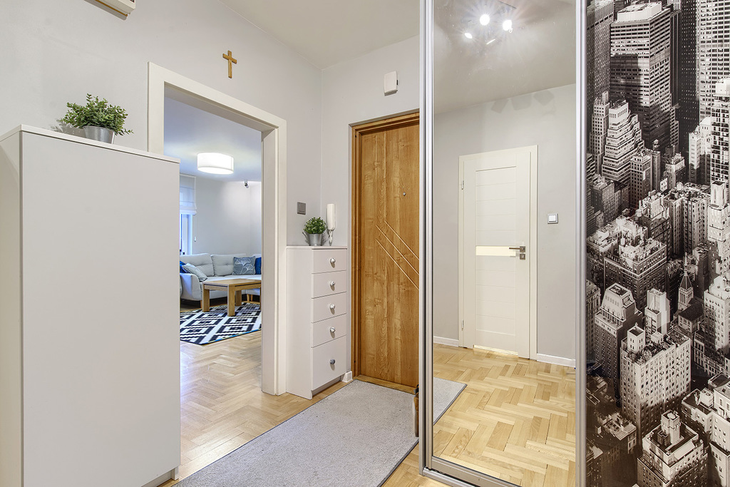 W obu sypialniach oraz w przedpokoju znajdują się wykonane na wymiar szafy w zabudowie dające dużo miejsca do przechowywania.
