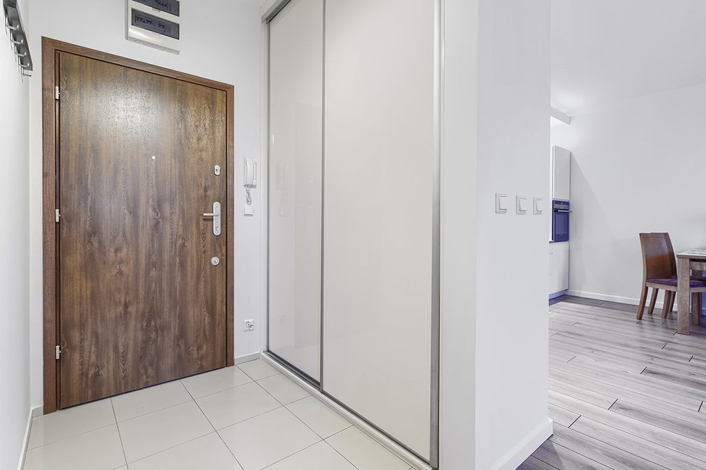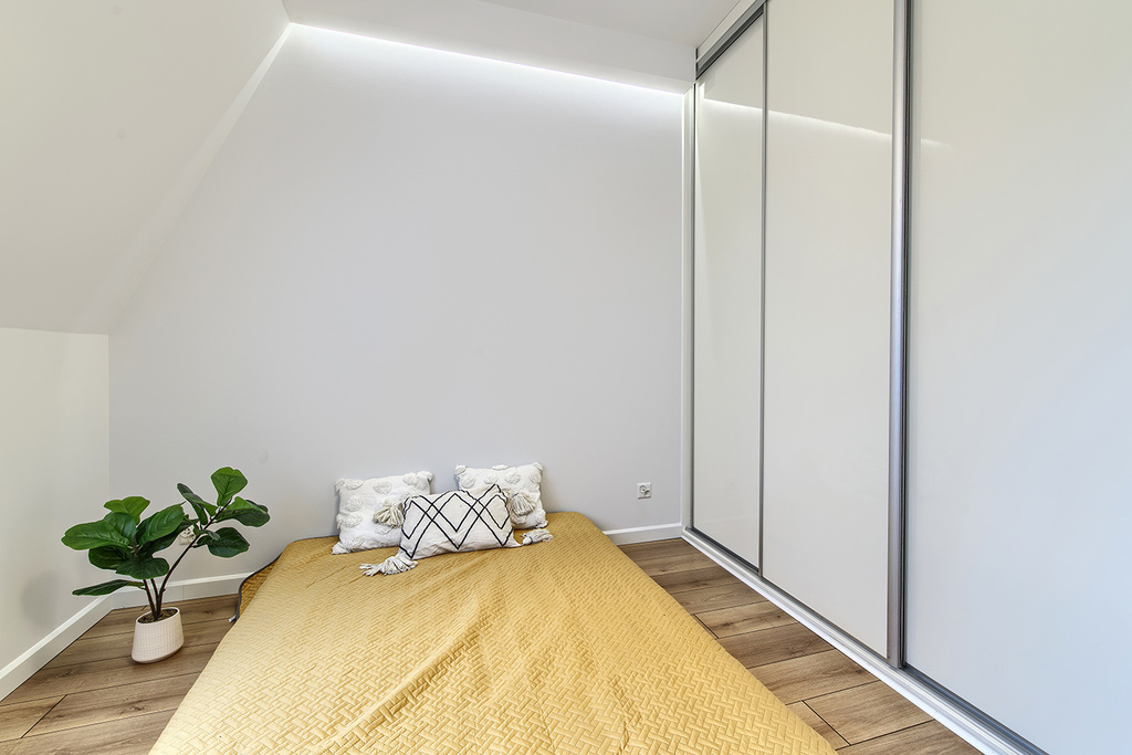 W sypialni oraz przedpokoju znajdują się bardzo funkcjonalne szafy wykonane na wymiar.
