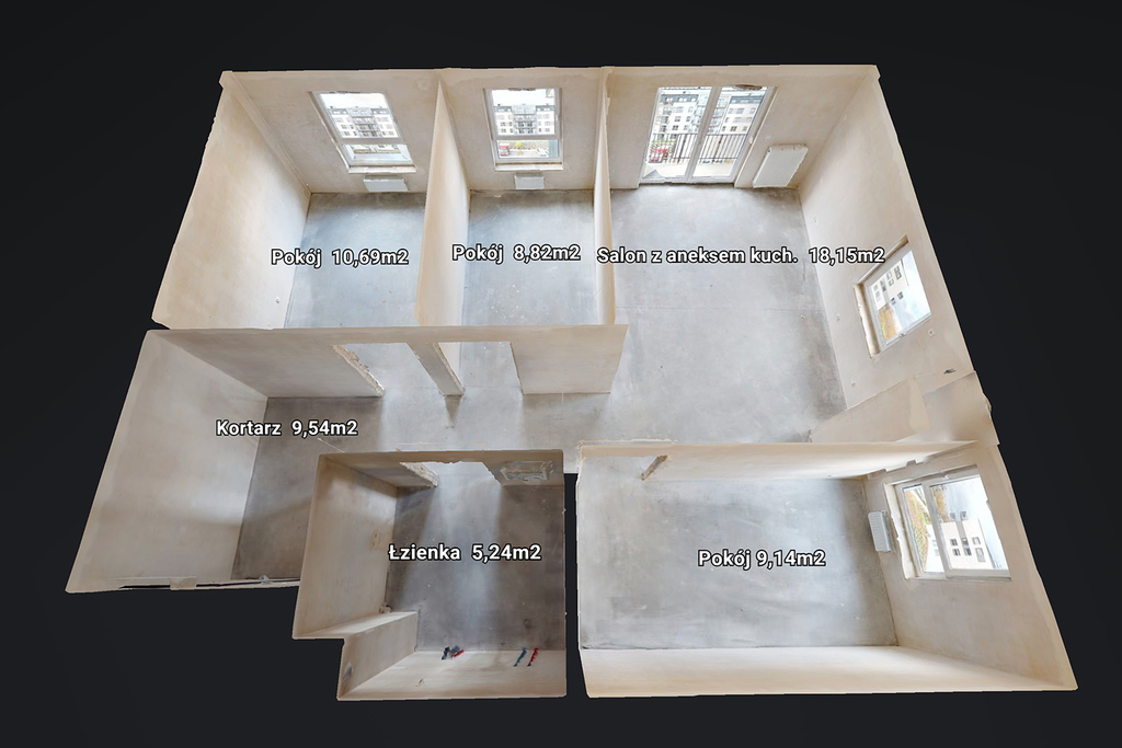 Nieruchomość o powierzchni 61,62 m2 składa się z: