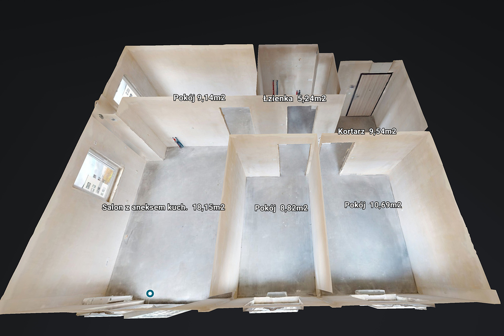 - salonu z aneksem kuchennym (18,15 m2) z wyjściem na balkon (5,92 m2)