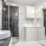 Łazienka - w stylu nowoczesnym, uniwersalna kolorystyka, miejsce na pralkę w szafce. Ogrzewanie podłogowe podłączone do C.O.
