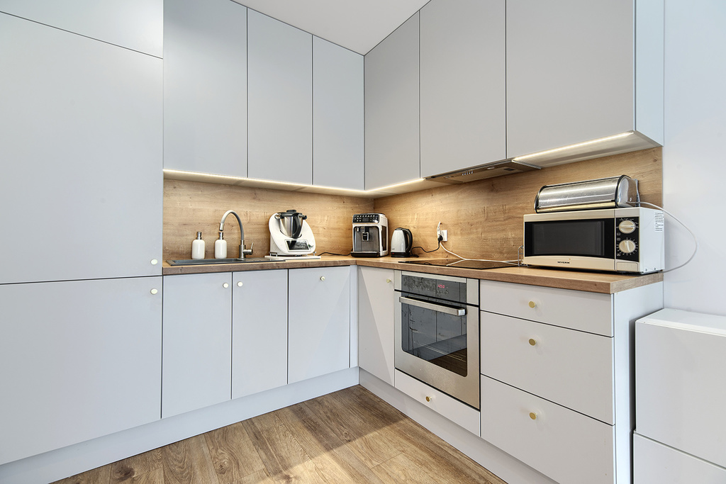 Kuchnia na zamówienie z pracowni stolarskiej. Markowe sprzęty AGD.
