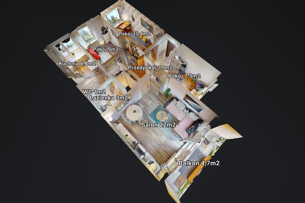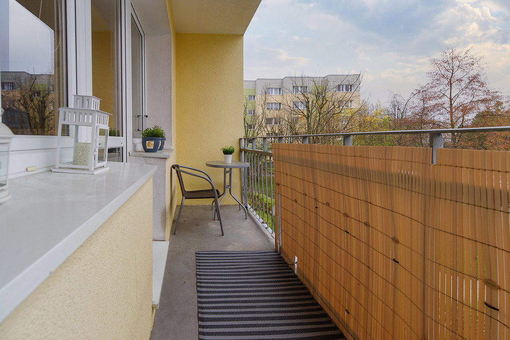 - salonu (22 m2) z wyjściem na duży słoneczny balkon