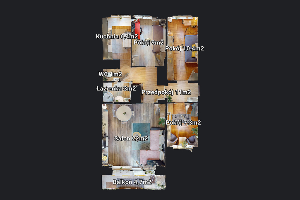 Nieruchomość o powierzchni 70,4 m2 składa się z: