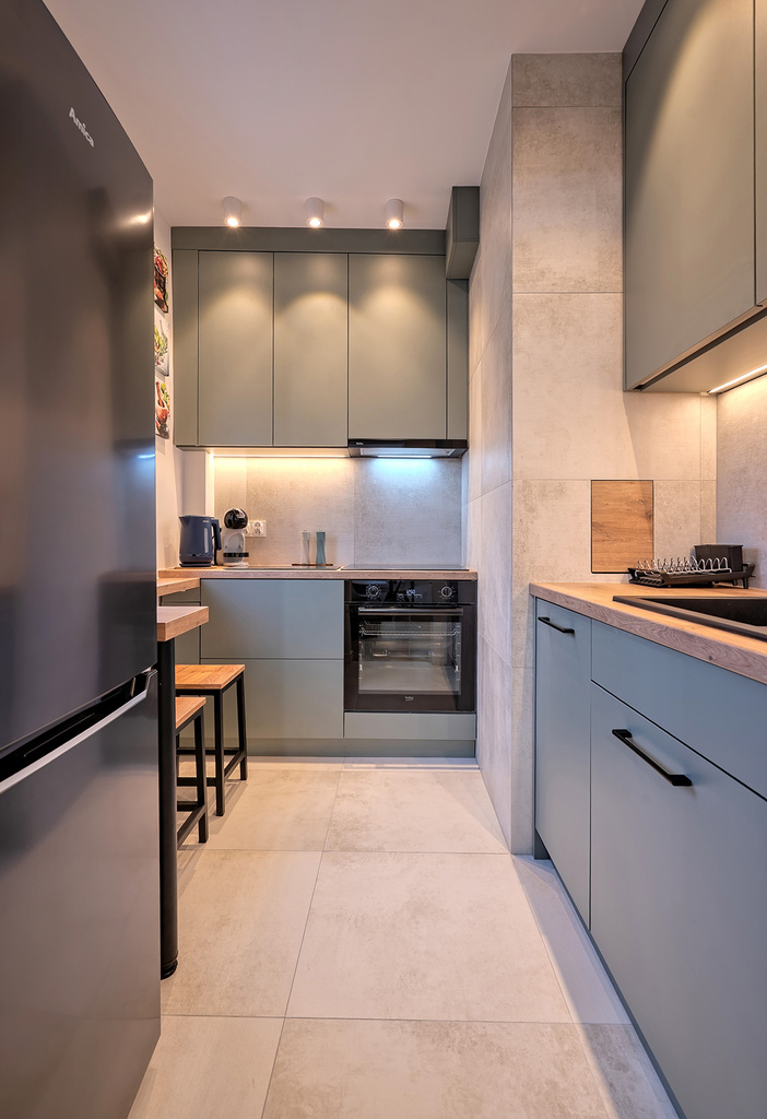 Kuchnia: oddzielna - Świetna kolorystyka; bardzo funkcjonalna z pełną zabudową oraz nowym sprzętem. Duża lodówka, zmywarka, płyta indukcyjna, piekarnik. Wyposażona w naczynia, sztućce, kubki, ekspres kapsułkowy, czajnik elektryczny.