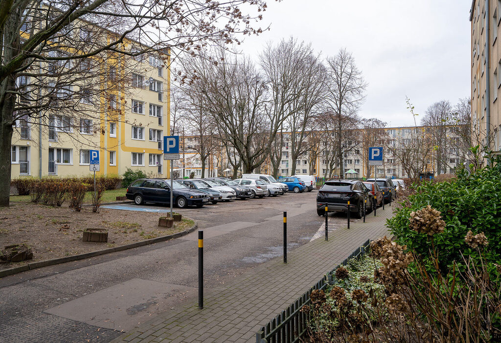 Przed budynkiem ogólnodostępne miejsca parkingowe