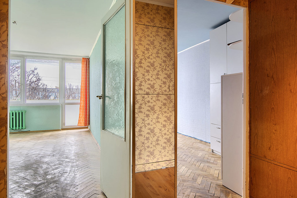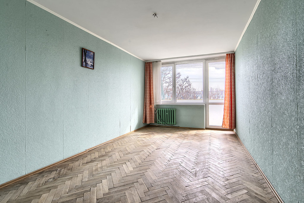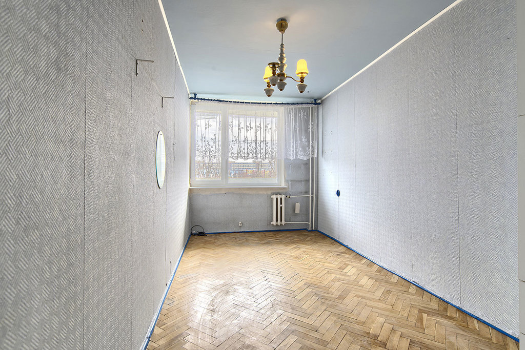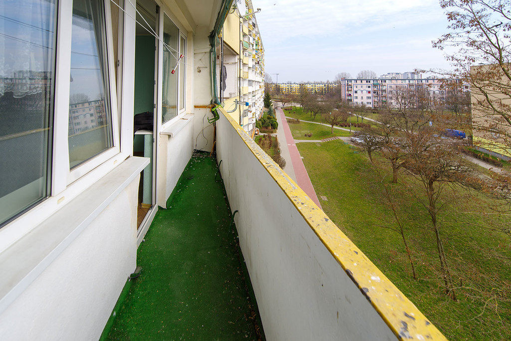 Mieszkanie środkowe i dwustronne z balkonem na IV piętrze w falowcu z 1973 roku.
