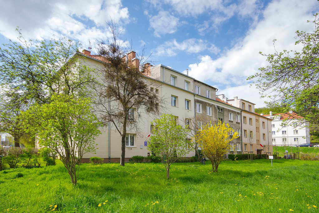 Mieszkanie znajduje się w dzielnicy Siedlce, na 2 piętrze niskiego budynku.