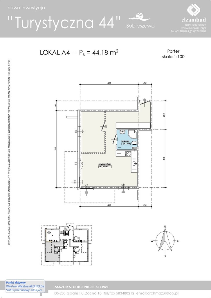 Na sprzedaż lokal A4 o powierzchni 43,62 m², położony na parterze nowoczesnego budynku przy ul. Turystycznej 44 w Gdańsku, na Wyspie Sobieszewskiej.