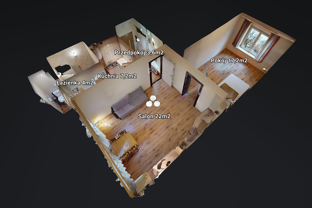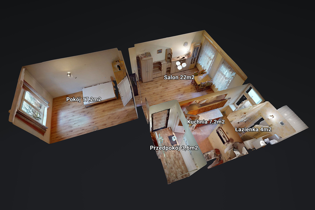 - salonu z dwoma podwójnymi oknami (22 m2)