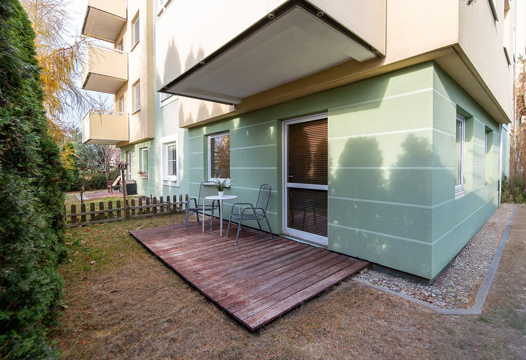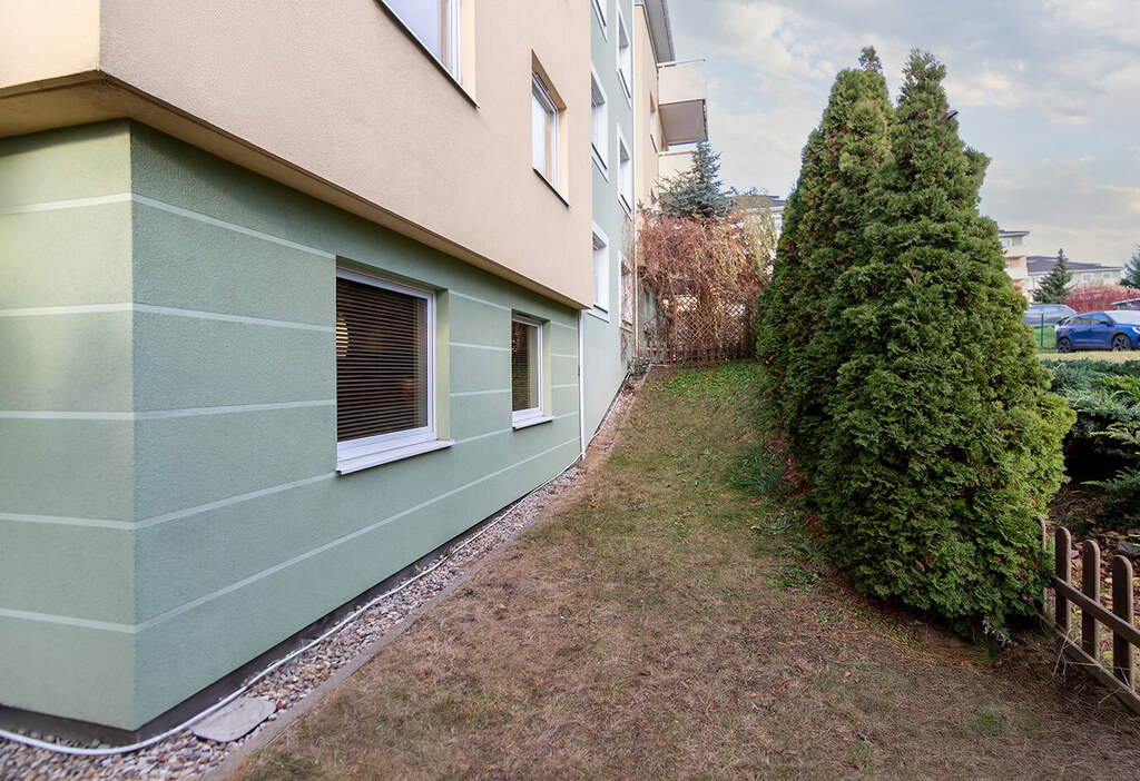 Mieszkanie znajduje się na parterze jednego z sześciu czterokondygnacyjnych budynków tworzących wspólnotę mieszkaniową w ramach osiedla wybudowanego w 2006 r. przez cenionego trójmiejskiego dewelopera Ekolan. Na terenie wspólnoty zadbana mała architektura i parking z ogólnodostępnymi miejscami parkingowymi i bramą na pilota. Wejście do budynku zabezpieczone domofonem. Osiedle ogrodzone oraz monitorowane.