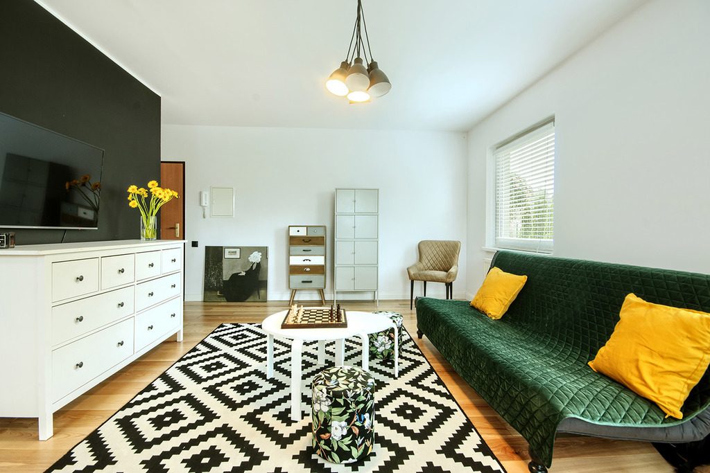 Jednopokojowe przytulne, jasne mieszkanie o powierzchni 33,4 m2 wykończone w podwyższonym standardzie (wszędzie na podłodze deska barlinecka czterostronnie fazowana, kolor jesion, wysokie białe listwy przypodłogowe Foge, włączniki światła i kontakty Legrand, w łazience hiszpańskie heksagonalne płytki podłogowe Equipe, drzwi do łazienki bezprzylgowe DRE, etc.).