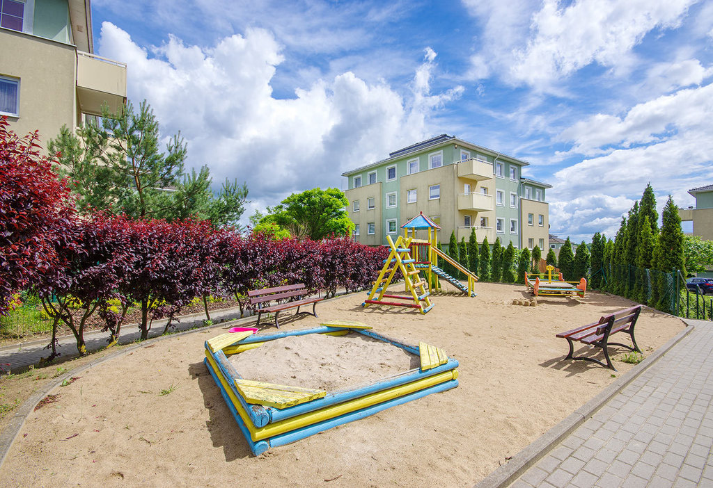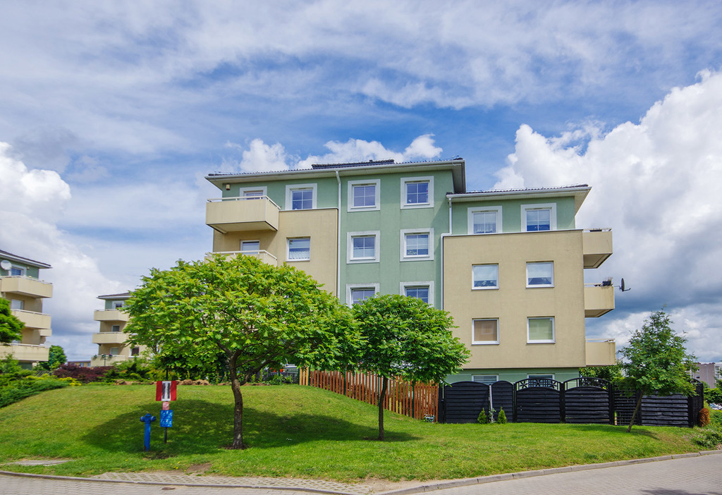 Mieszkanie znajduje się na parterze jednego z sześciu czterokondygnacyjnych budynków tworzących wspólnotę mieszkaniową w ramach osiedla wybudowanego w 2006 r. przez cenionego trójmiejskiego dewelopera Ekolan. Na terenie wspólnoty zadbana mała architektura i parking z ogólnodostępnymi miejscami parkingowymi i bramą na pilota. Wejście do budynku zabezpieczone domofonem. Osiedle ogrodzone oraz monitorowane.